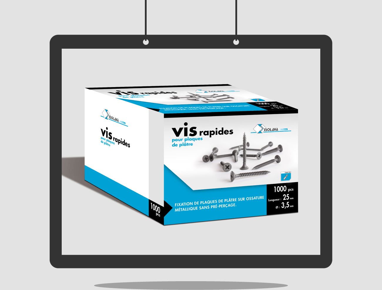 Elle a, entre autres, à sa charge la communication de l’entreprise de matériaux pour le bâtiment Isolava. Pour la création de packaging, de plaquette commerciale, de flyer, PLV, etc, c’est à moi qu’elle s’est adressée.